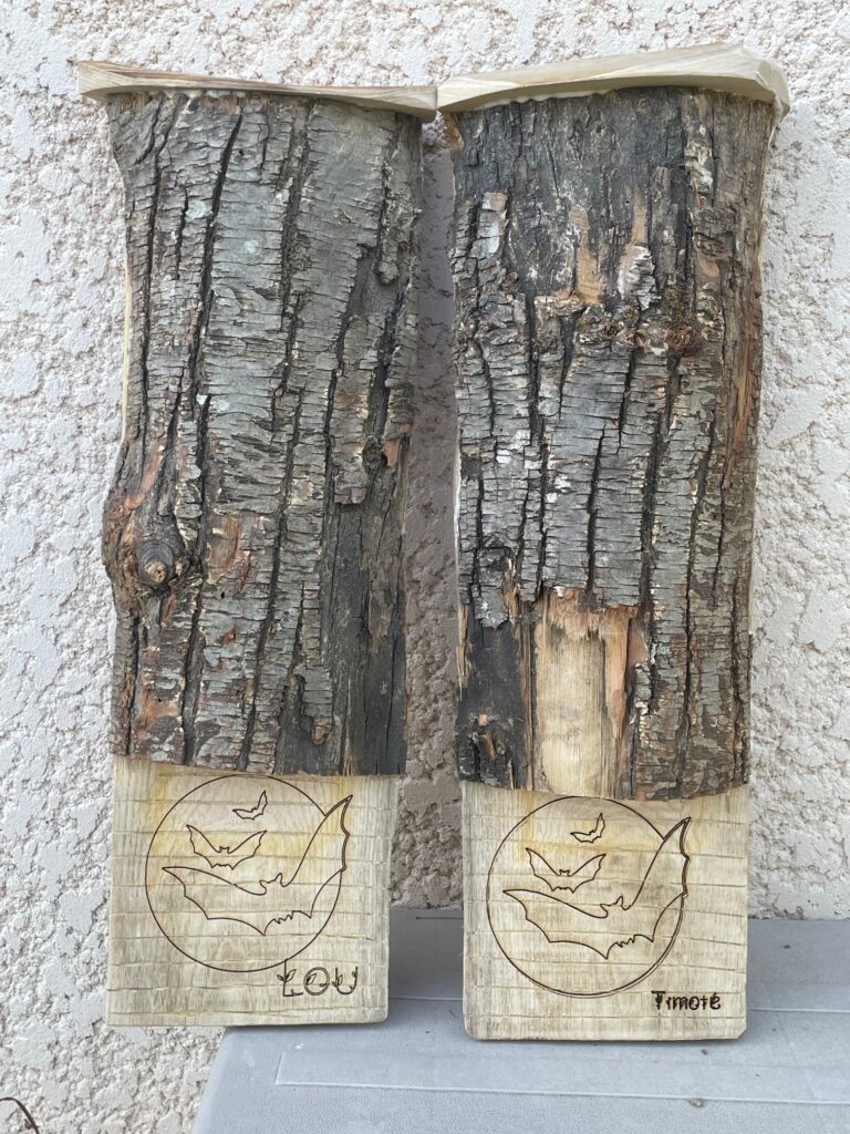 Décorés en gravure laser, les nichoirs peuvent être personnalisés selon vos envies.