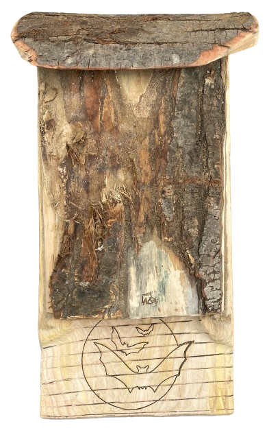 La fenêtre d’entrée, d’environ 2 cm de haut, permet aux chauves souris de venir se blottir au fond du nichoir, à l’abri de la lumière et des prédateurs.