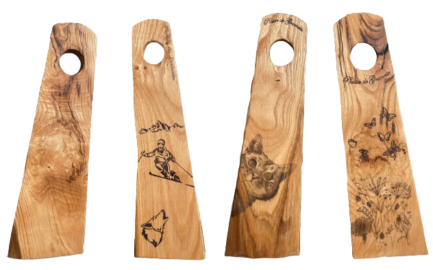 Divers planches à saucisson avec tailles, formes spécifiques et décors personnalisés.